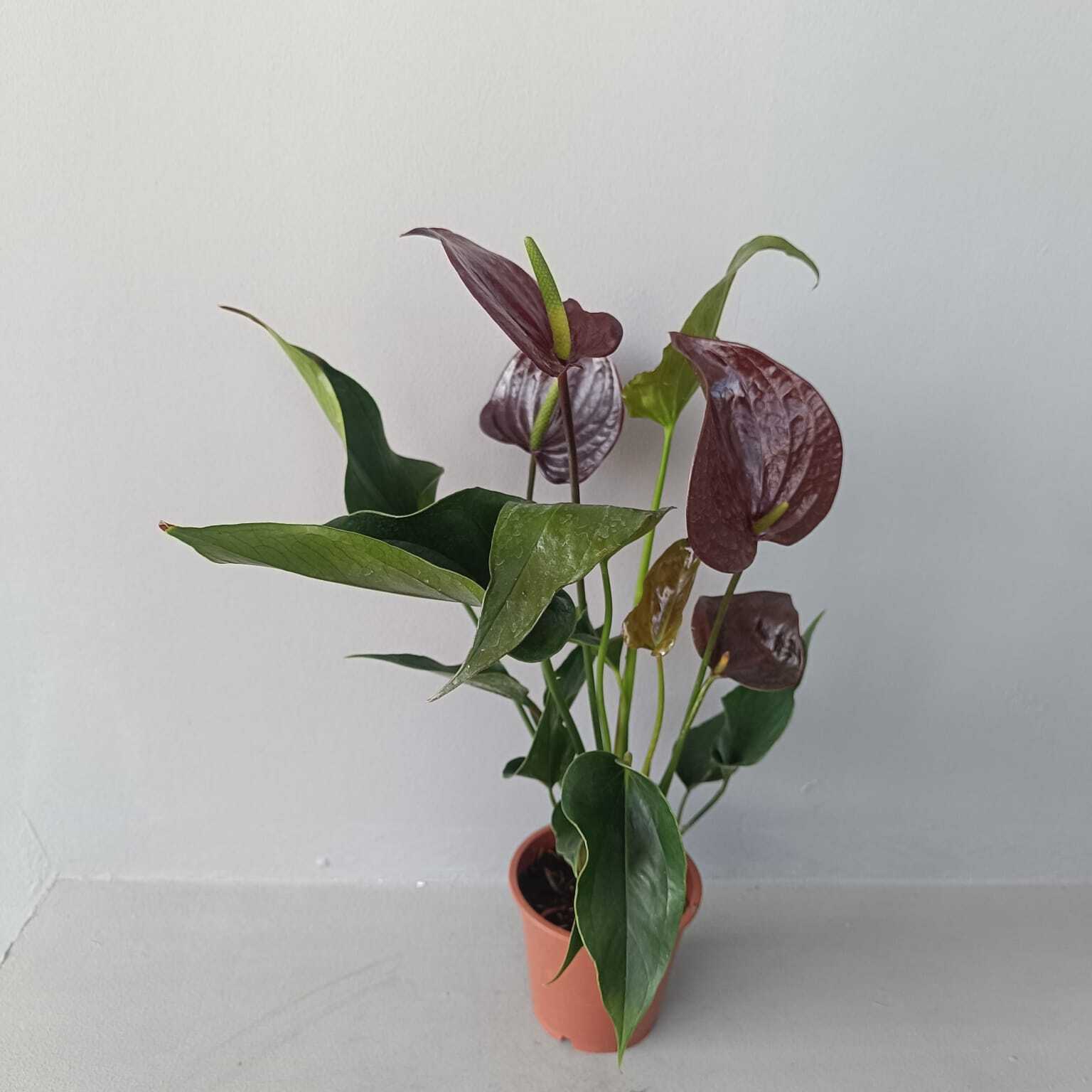 Антуриум «Челси Шоколад» — роскошное украшение вашего интерьера! Яркие шоколадные цветы гармонично сочетаются со здоровыми зелеными листьями, создавая атмосферу изысканности и уюта. Этот экзотический цветок станет центром внимания гостей и наполнит дом позитивной энергетикой. При этом антуриум неприхотлив в уходе – идеален даже для занятых людей, мечтающих о зеленом уголке дома.